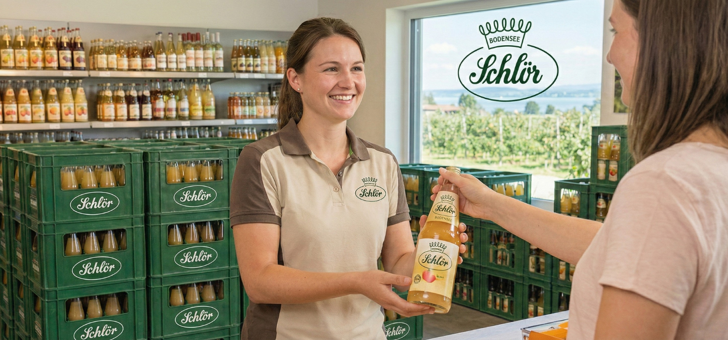 Wir sind Schlör Bodensee-Fruchtsäfte – ein führender Hersteller in unserer schönen Region. Unsere Säfte kennt hier jeder. Für unseren Direktverkauf in Radolfzell suchen wir keine "Regal-Roboter", sondern freundliche Anpacker (in Vollzeit oder Teilzeit), die Lust haben, unseren Kunden den Einkauf zu versüßen.